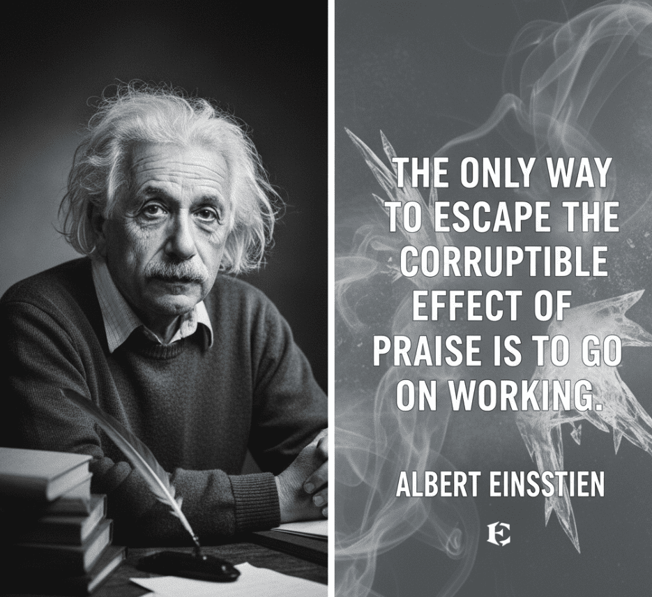 The only way to escape the corruptible effect of praise is to go on working. Albert Einstein